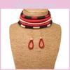 This jewelry set features a bold African-inspired woven choker and matching earrings, crafted from a mixed material with electroplated finishes for durability. The necklace measures approximately 16 inches long with a 2-inch extender, while the alloy pendants showcase celestial and natural motifs like stars, moons, and clouds. Suitable for casual or festival wear, the set enhances personal style with its intricate knot design and vibrant color options. Maintain by wiping gently with a damp cloth to preserve the electroplated surface.
