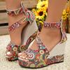 Fashion 2025 New Ladies Shoes Back Zipper Women's Sandals Fashion Printing Summer Open Toe Plus Size Best Seller Wedge Sandals Zapatos