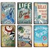 Summer Beach Decor Vintage Metal Tin Signs Plaque Metal Plate Retro Posters Wall Art Decor Seaside