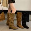 Coarse heel western cowboy boots slim belt buckle but knee Maillard knight boots women's winter 2025 new stacking boots