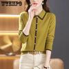Women's Knitted Sweater Spring/Autumn/Winter Loose Flip Collar Western Style Knitted Sweater Top Mom