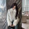 Kort kåpe i fuskepels for kvinner med nedbrettskrage - Casual allsidig gatestil