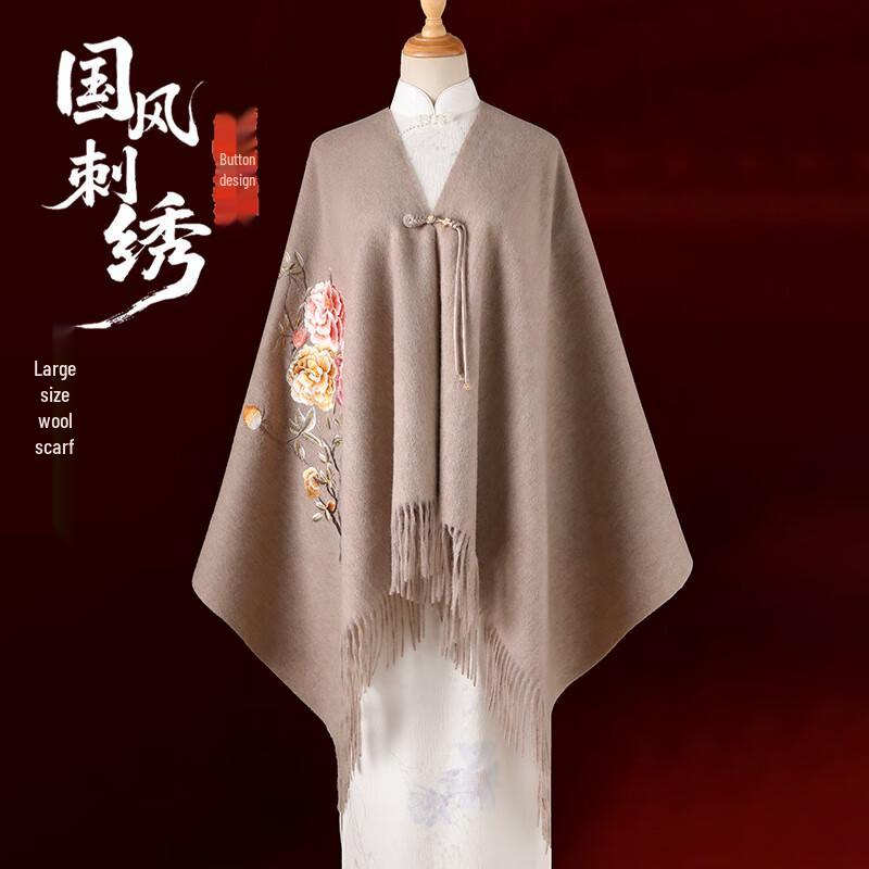 Hang Sifu Pure Wool Embroidered Scarf Shawl