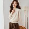 Indulge in elegance with this exquisite sweater top, crafted from a luxurious blend of 16-needle 3D cable knit extrafine merino wool and polyester. Its solid pattern exudes sophistication, while the thin thickness ensures a lightweight and comfortable fit. The round neckline and long sleeves offer classic appeal, beautifully accented by delicate bead embellishments. This sweater top effortlessly combines style and comfort, making it a must-have addition to your wardrobe.