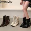 Модные дизайнерские женские ботильоны с острым носком, модные толстые каблуки, утягивающие короткие ботильоны, осенне-зимняя женская обувь