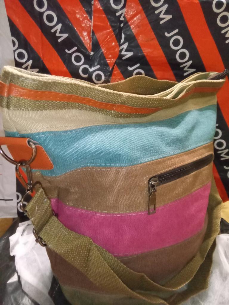 Pohodlná plátená taška.Škoda, že je vertikálna a nie horizontálna