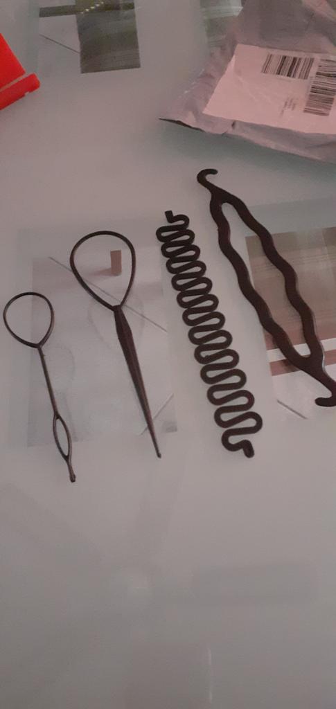 Mám veľké množstvo vlasov, pravdupovediac, nemôžem použiť tie dva diely, ktoré sú prvé na fotografiách, pretože ma nedržia, sú dosť krehké. tie ostatné áno, ako ten do drdola, ktorý sa ľahko používa a je z tvrdého plastu. ako ten do vrkoča, preto dávam 3 hviezdičky, stále používam tie dva do vrkoča a do drdola