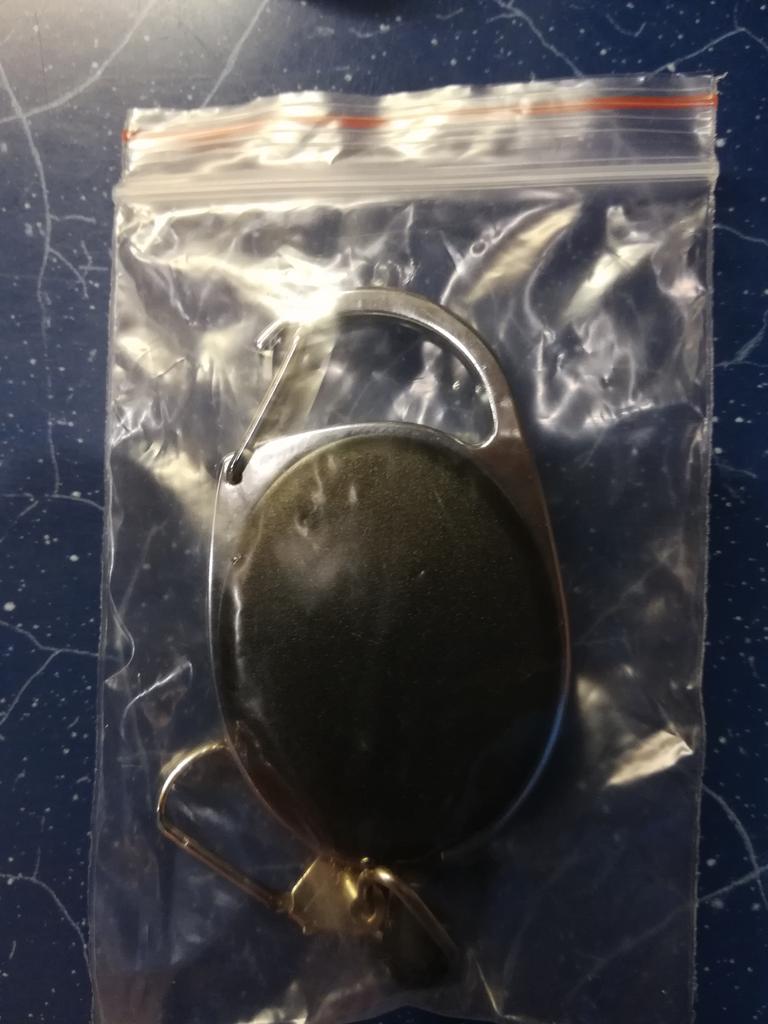 1 ks zaťahovacia cievka s nastaviteľnou kľúčenkou na drôtené lano s karabínou proti krádeži