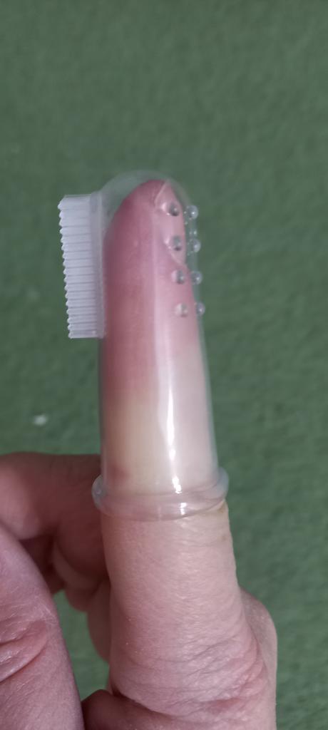 Výrobok je plastová zubná kefka, ktorá sa hodí na prst na čistenie zubov vášho psa, je kvalitná, ale pasuje len na môj malíček, ale určite to zvládne!👍
