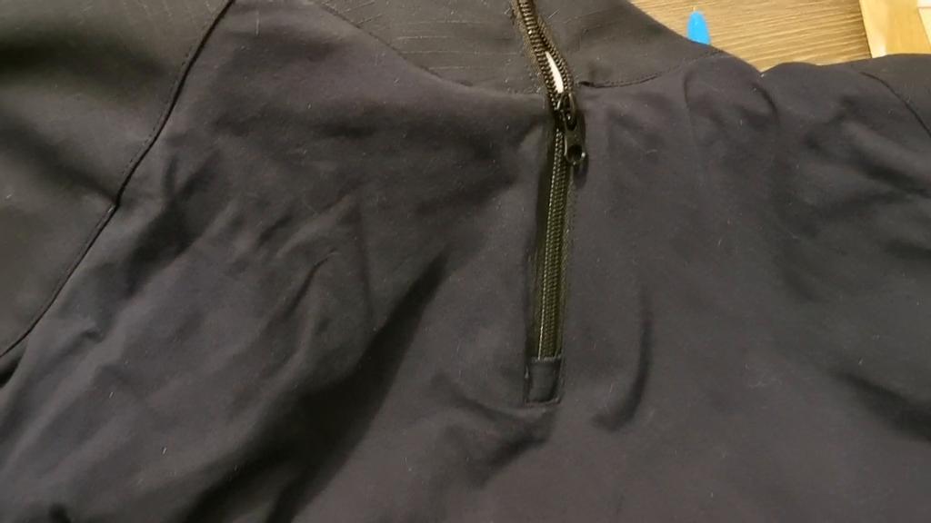 Rukáv siaha až po zápästia, ako sa patrí, so skvelou úpravou pásika na suchý zips, ruky až po krk sú z iného vodeodolného materiálu, no stredná (hlavná časť) látky je hladká na dotyk, ľahká a nejaká. priedušná. Všimnite si tiež, že lakťové rukávy majú v sebe medzeru na pridanie návlekov na lakte (ochranné vybavenie) a že krk je možné zapnúť zipsom od otvoreného po bežný a plný, aby zakryl váš krk pred vetrom a dažďom, ako aj časť náplasti na oboch ramenách. Vysoko odporúčané!!
