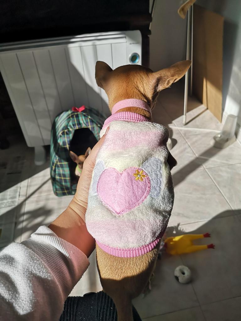 Veľmi veľmi dobrý Vzal som veľkosť S pre čivavu s hmotnosťou 2 kg 500.