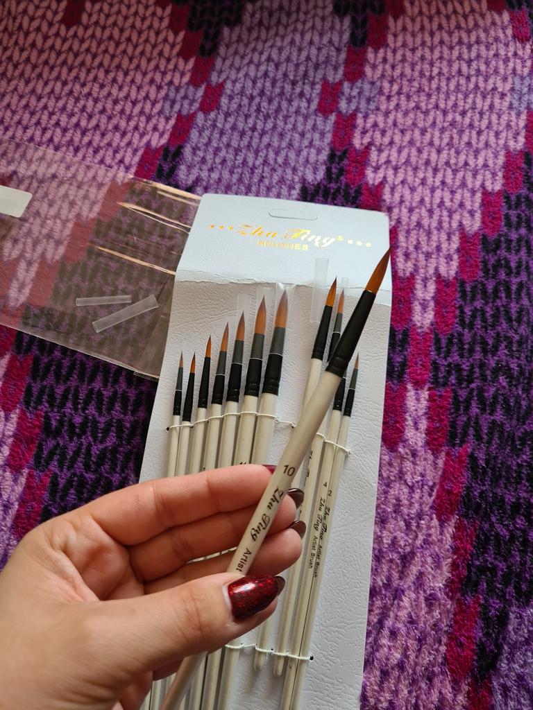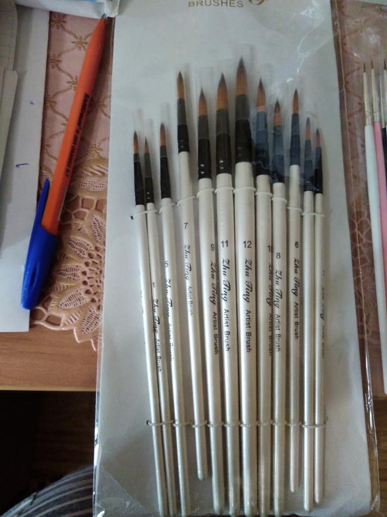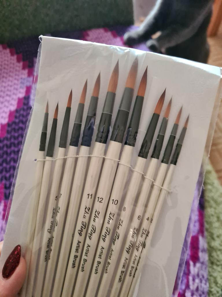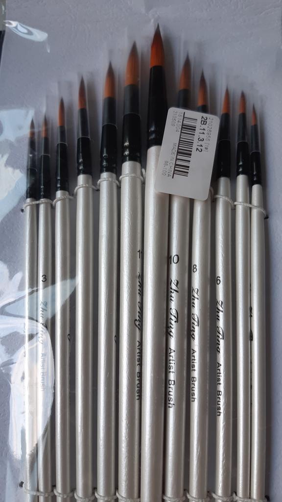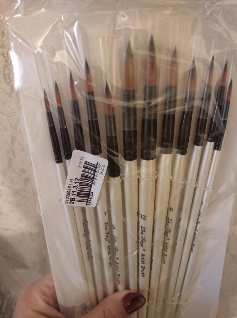 Sú to vynikajúce štetce na akvarel a akryl, toto bola posledná sada, ktorú som potrebovala, aby som mala kompletnú kolekciu. Ako však môžete vidieť na fotke, nie sú dobre zabalené a štetiny sú ohnuté. Dúfam, že obnovia svoj pôvodný tvar, inak mi nebudú užitočné. Tieto sady štetcov odporúčam ako amatérom, tak aj profesionálom.