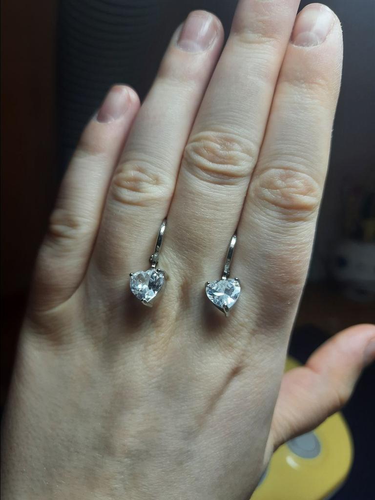 Krásne náušnice, v striebornej farbe vyzerajú veľmi pekne. Kamienky žiaria ako diamanty. Fotografia nevyjadruje všetku brilantnosť.