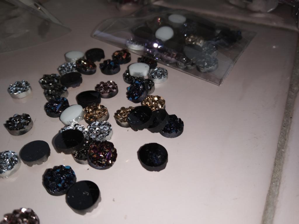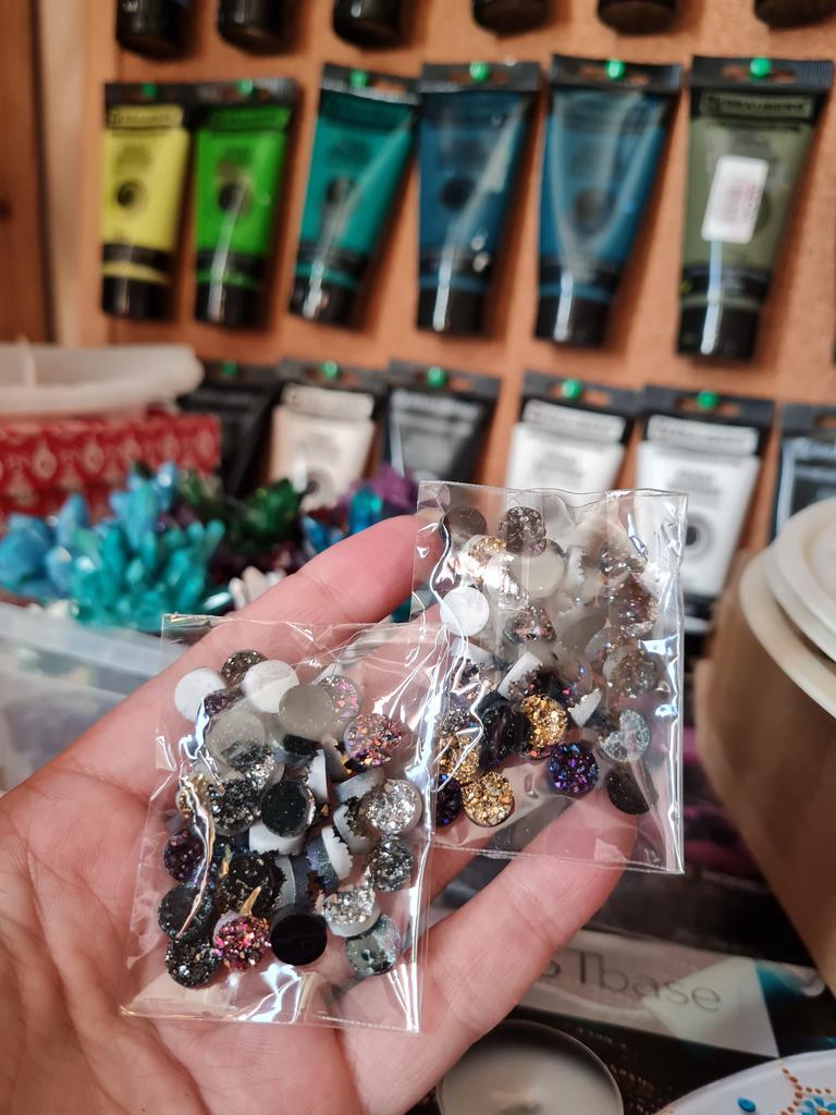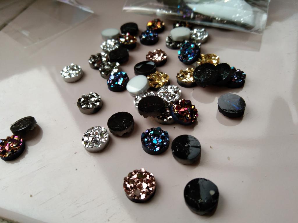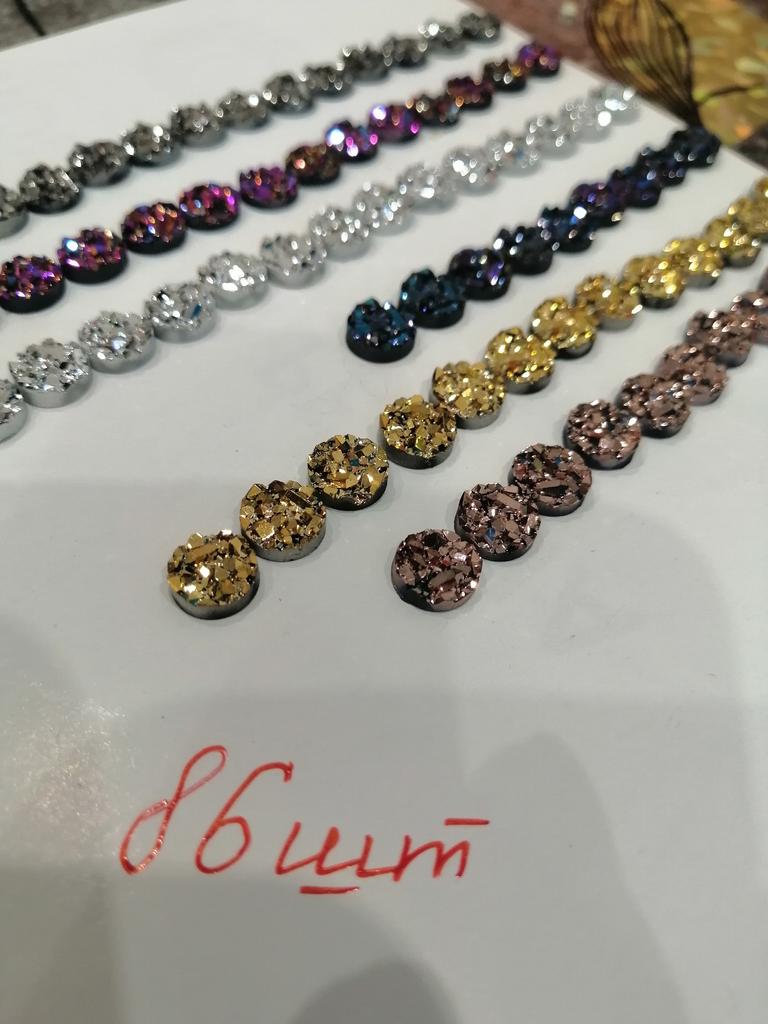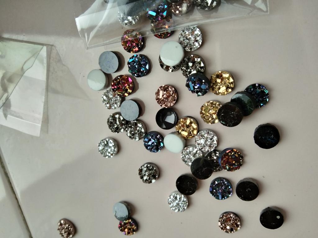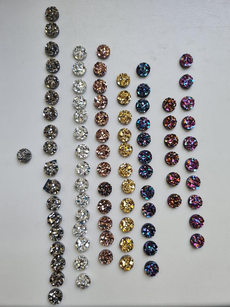80ks AB Resin Bling Nepravidelnosť Povrch Rudy Kryštál 8 mm Okrúhly plochý kamienkový Ornament