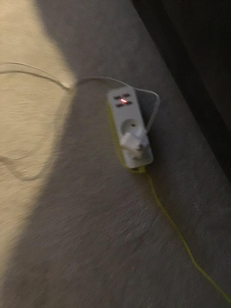 Chladný predlžovací kábel. Funguje skvele. Nabité perfektne, ale nie veľmi rýchlo. Je to však výhodné, ak existuje iba jedna zásuvka a je zle umiestnená.