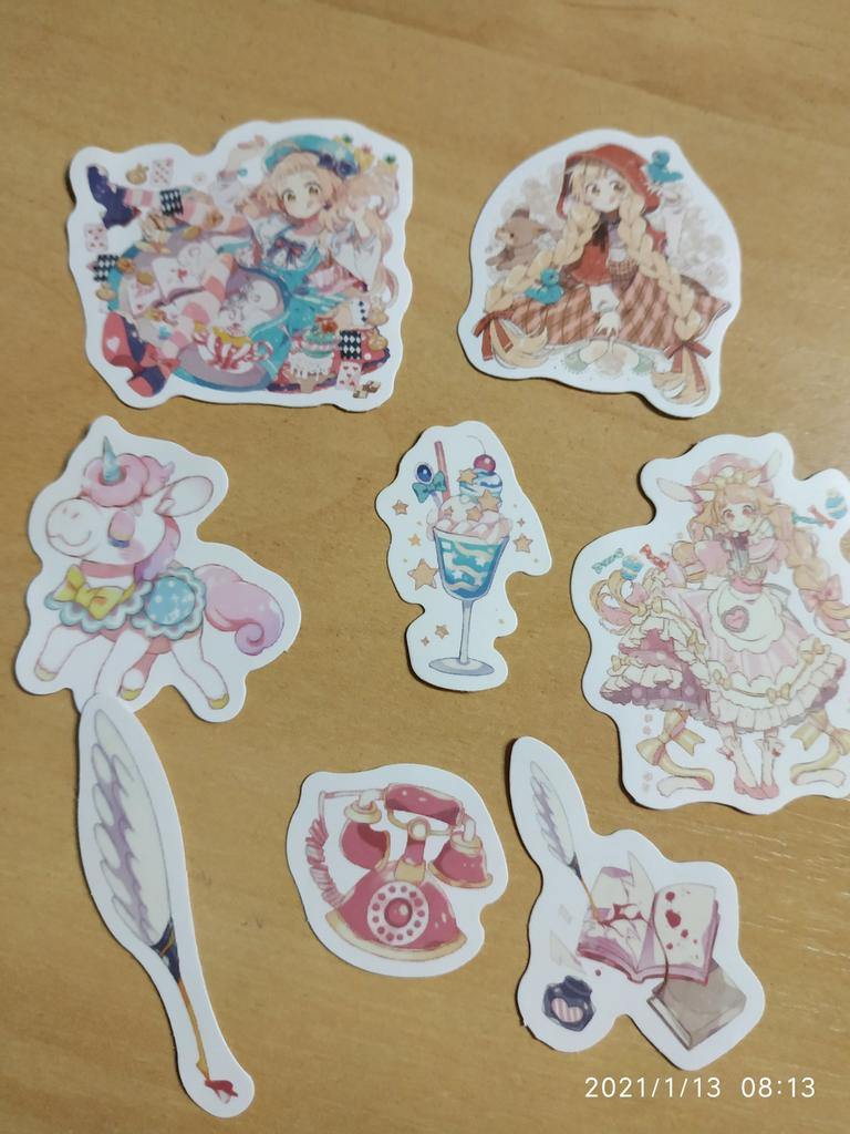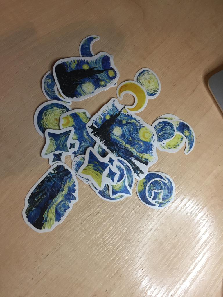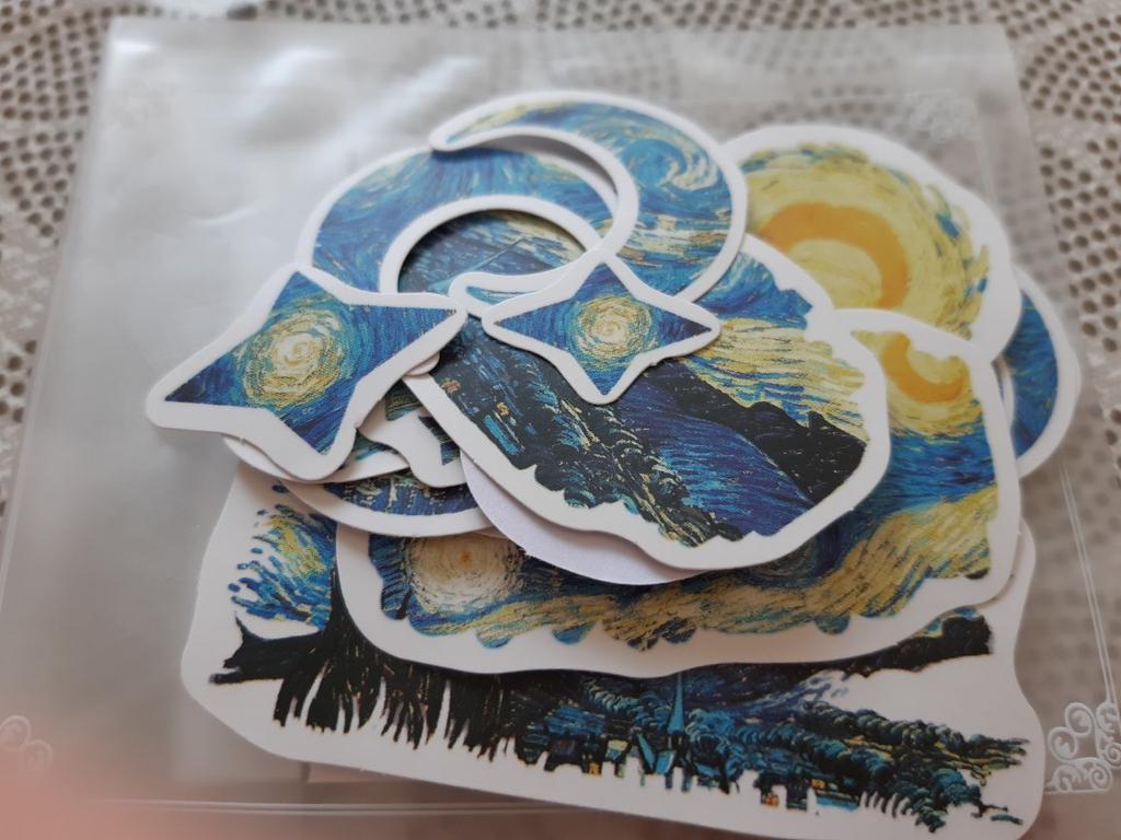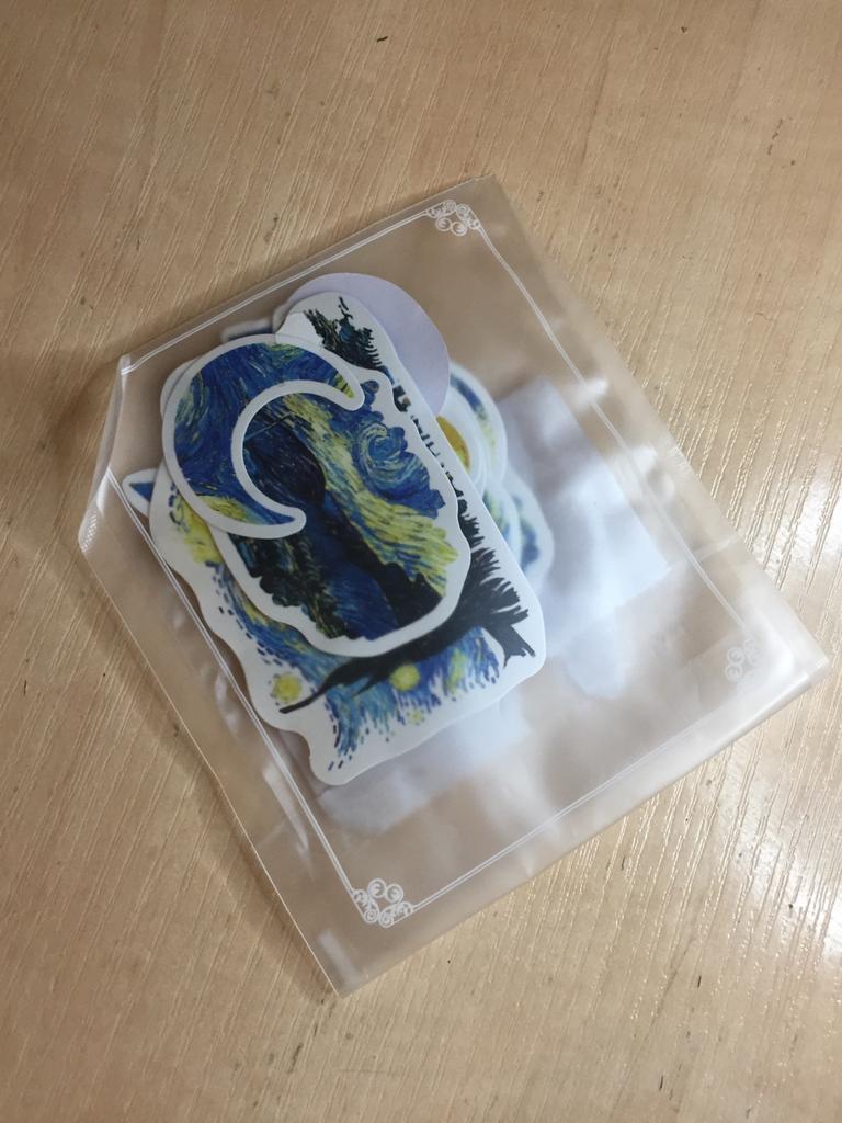 Nálepky sa mi veľmi páčia. Prišli mi bezpečne zabalené a v najlepšom stave. Joom sem poslal moje nálepky zastrčené v trojvrstvovom plastovom obale. To bolo pre mňa dosť mätúce, pretože nálepky sú už zabalené v priehľadnom plastovom obale, aby zostali na mieste a nevypadli. Nemyslím si, že to už zodpovedá nášmu časovému štandardu. Mali by prejsť na udržateľnejšie materiály a prestať používať všetok tento materiál, keď to nie je potrebné. Teraz k nálepkám: Dostanete spolu 25 nálepiek, ktoré sú vyrobené z papiera. Okolo nich je hrubý biely okraj, ktorý rámuje skutočný motív. Kvalita tlače je úžasná. Sú ostré a rozmanitosť motívov je skvelá (pozrite si obrázky) Každá nálepka-miska je jedinečná, takže si budete musieť dávať pozor, na čo ich použijete. Teraz sa príliš nelepia na papier. Môžem ich ľahko odlepiť bez toho, aby som poškodil papier pod nimi. Pre niektorých z vás to môže byť dobré, ale mne to vadí.