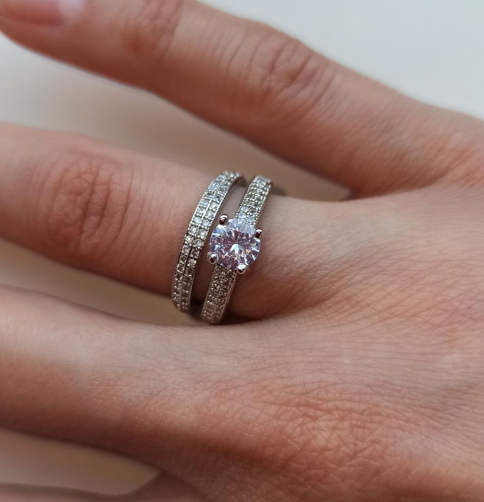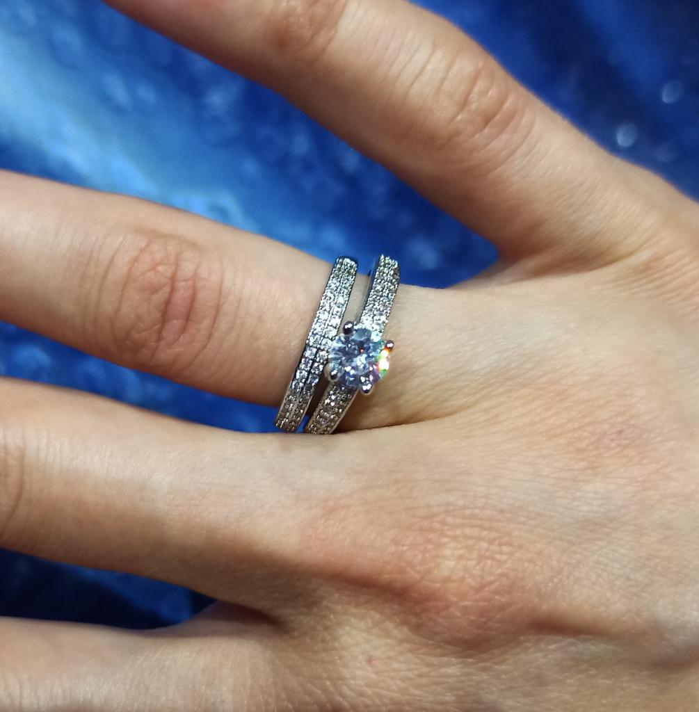 Dámsky set prsteň plnený okrúhlym zirkónovým jemným prsteňom Svadobný zásnubný svadobný šperk