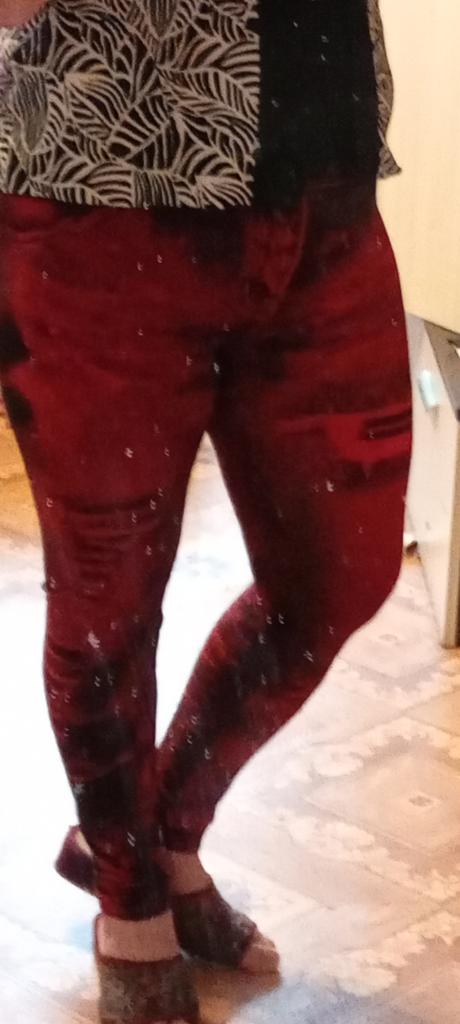 Tieto nohavice sa mi páčia, ale musím si dávať pozor, pretože sú minimálne priehľadné, takže je najlepšie ich nosiť s dlhším topom. Materiál je tenký, to mi nerobí problém