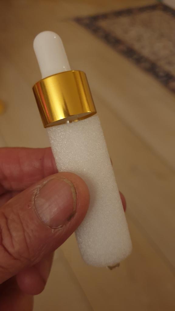 Krásne - prišlo načas, bolo dobre zabalené, žiadne úniky. Dodáva sa s pipetou/kvapkadlom/aplikátorom.