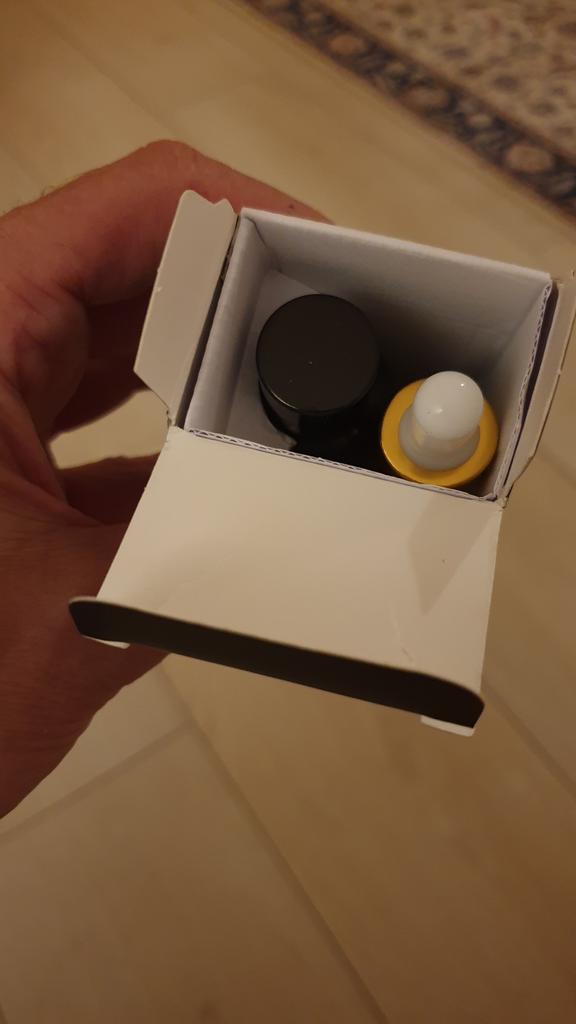 Krásne - prišlo načas, bolo dobre zabalené, žiadne úniky. Dodáva sa s pipetovým kvapkadlom / aplikátorom.