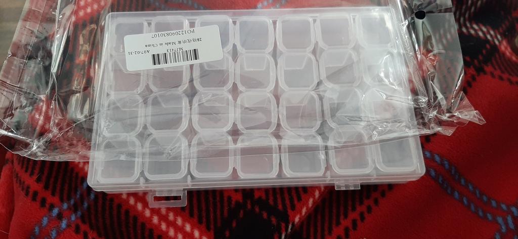Tento box dorazil pomerne rýchlo 😊 Trvalo to 2-3 týždne 👍 Krabica je: 🌸 Jednoduché otváranie 🌸 Má 28 malých izieb 🌸 Dá sa využiť na uskladnenie mnohých vecí 🌸 Drží pevne 🌸 Veľmi praktické Moja dcéra a ja milujeme diamantové obrázky a preto je fantastické mať škatuľku na ich uloženie, aby sa diamanty ľahšie používali 🤩 Box sa dá využiť na veľa iných vecí 😊👍 Napr. gombíky, špendlíky, klinčeky a mnoho iných drobností 🤩 Určite sa dá odporučiť ľuďom, ktorí chcú mať prehľad o maličkostiach 👍👏