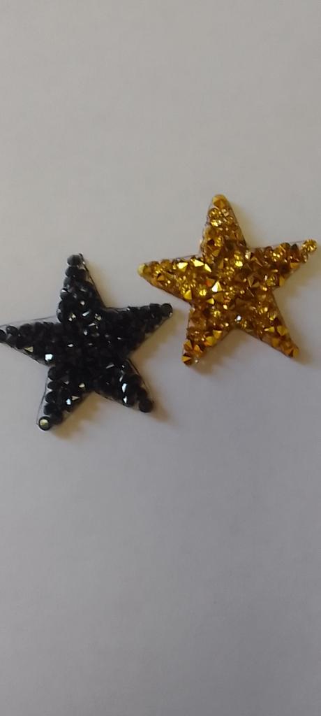 Pekné nálepky. Najmenšia dĺžka lúčov je 2 cm.Na lepivý povrch sú nasypané kamienky. Vydržia dlho. Vydržalo rok prania. Samozrejme, časom sa začali odlupovať. Ale len na veľkom, pretože miesto lepenia nie je jednoduché - na koleno. S dôverou odporúčam. Zachránili ma moje obľúbené nohavice, o ktorých som si myslel, že si ich už nikdy neoblečiem. Mala som to na sebe deň čo deň.