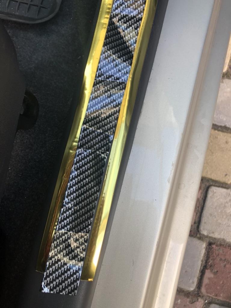 Na zadný a predný prah potrebujete dva. Jedna na jednu stranu. Pred lepením som ho nahriala na slnku, keďže tam nebol fén, dobre držal.