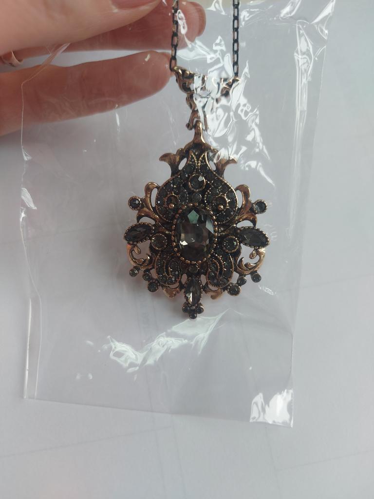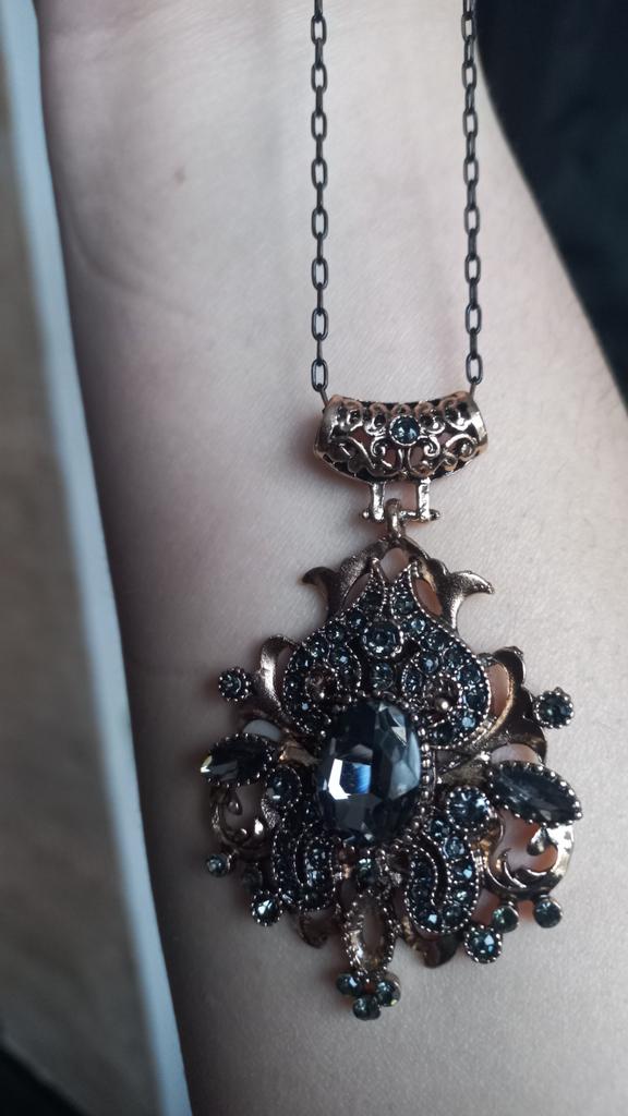 Sunspicems Vintage Grey Crystal Necklace For Women Turkish Antique Gold Color Pendant Necklace Ethnic Wedding Jewelry Gift