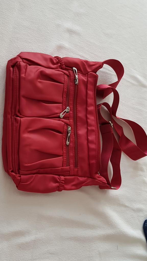Krásna taška Dobrá veľkosť Veľa vreciek. Oneskorené doručenie, ale spokojnosť s tovarom. Ďakujem Joom.