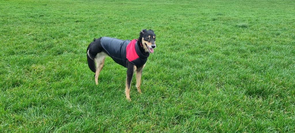 Bunda veľmi dobre sedí a môj pes sa v nej cíti pohodlne.