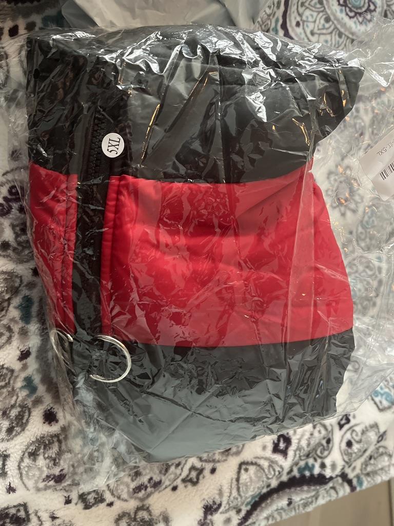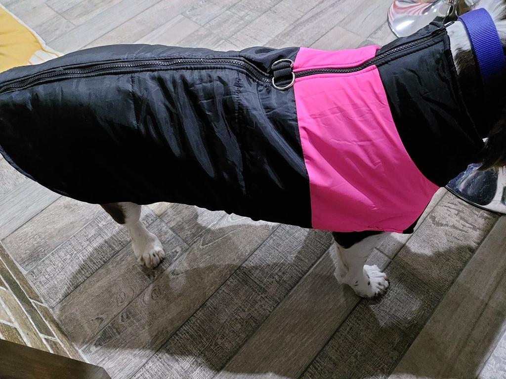 Pekná a pekná bunda. Pohodlné zapínanie na zips. Môj pes váži 18 kg a 5 XL je pre neho trochu veľký.