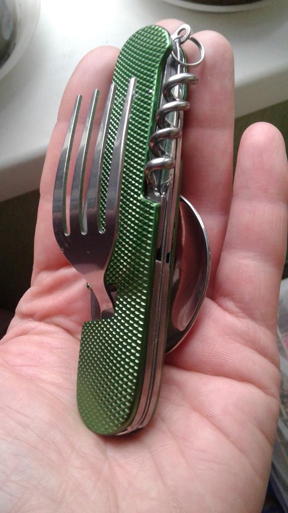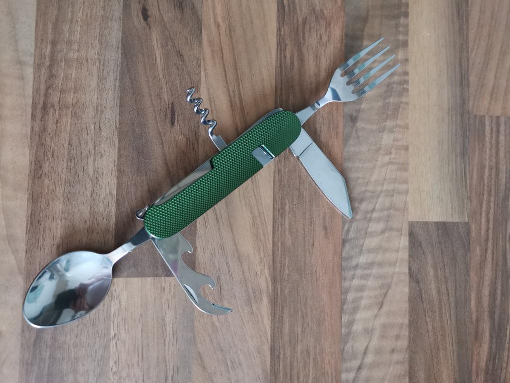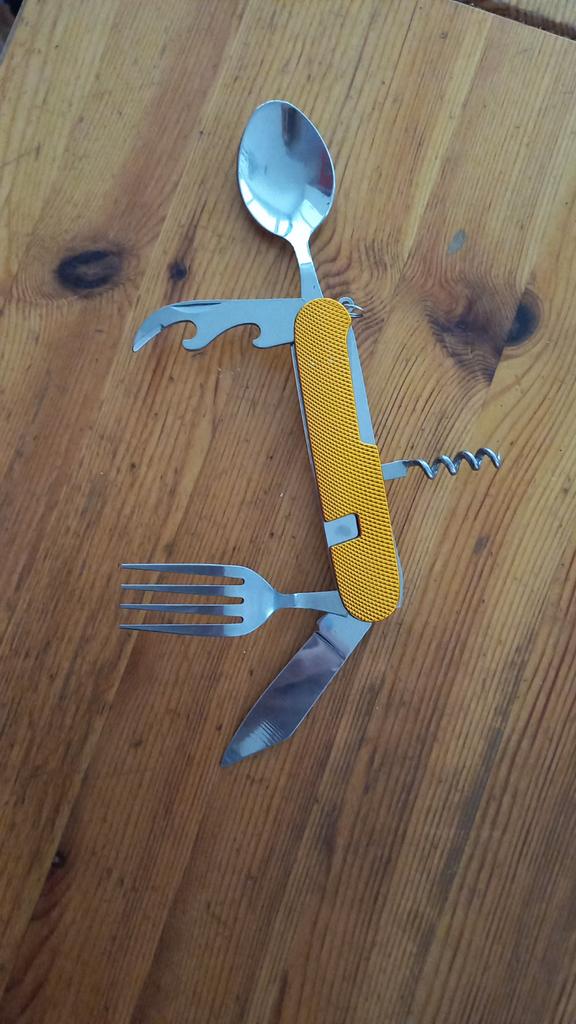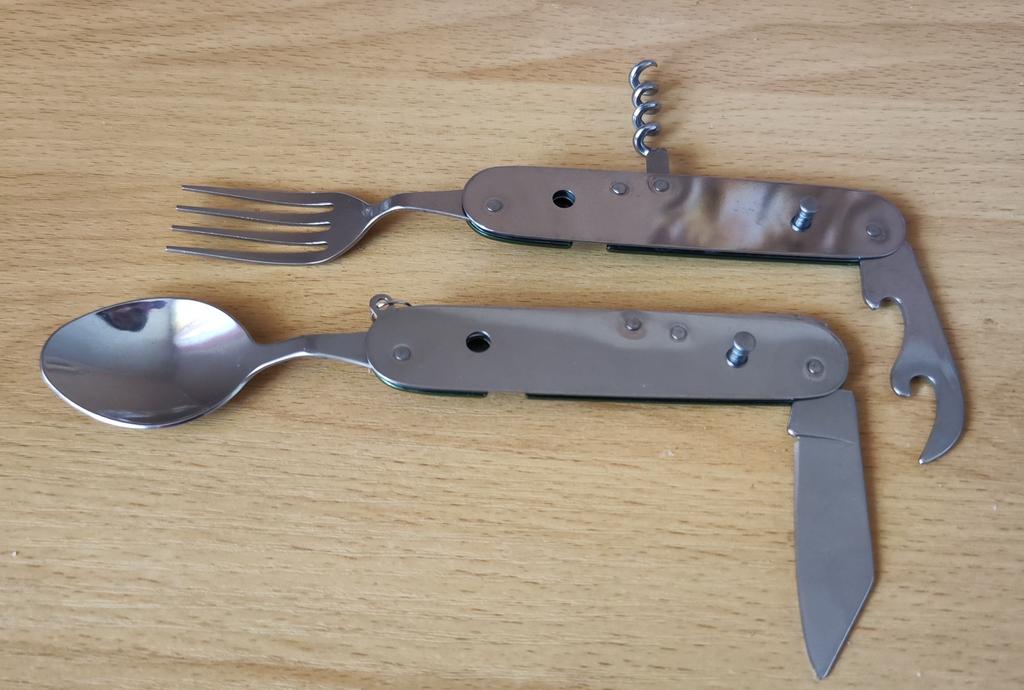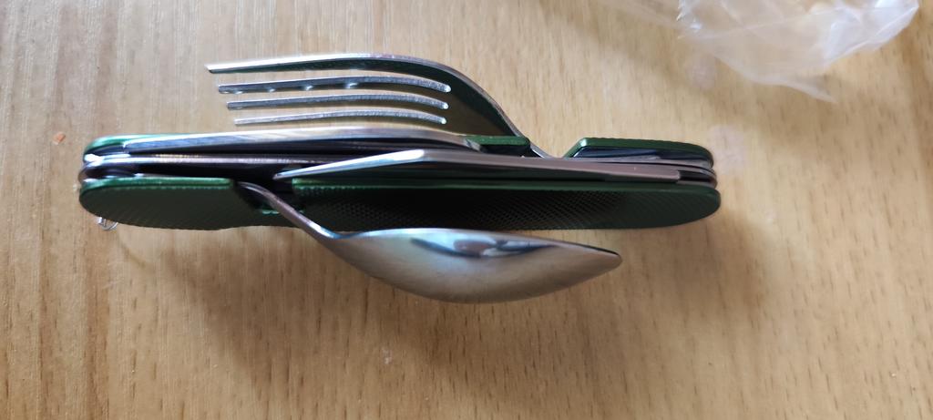 Skvelý nôž/vidlička/lyžica na kempovanie. Ďakujem Joom