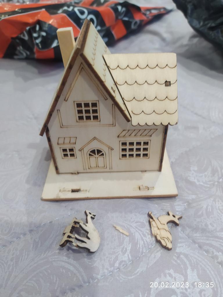 Domček je roztomilý, ale zabalený jednoducho vo vrecúškach. Z tohto dôvodu sa figúrky jeleňov odlomili. Predajca by mal takéto krehké veci baliť opatrnejšie.