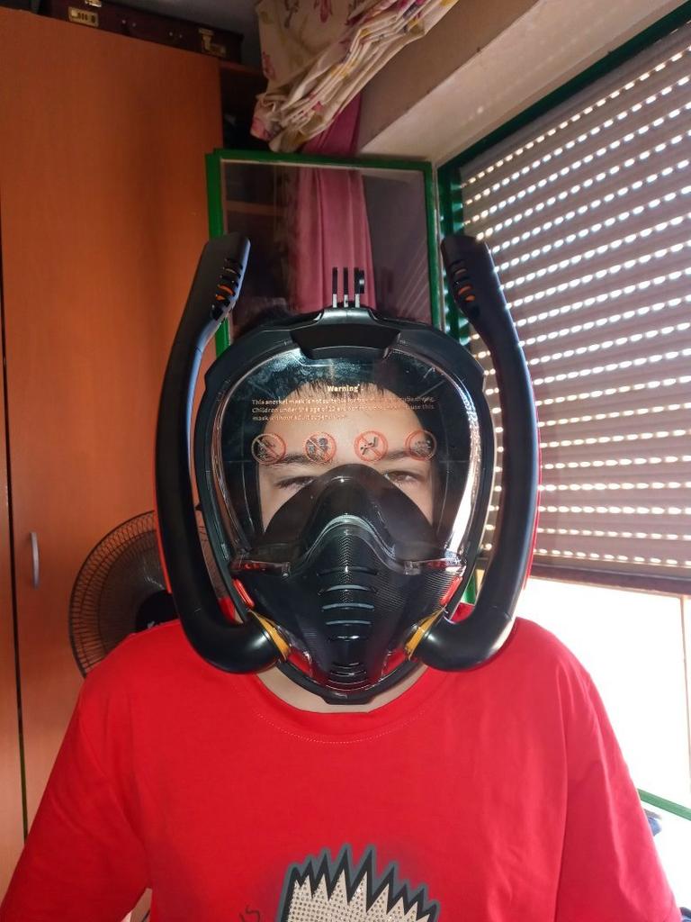 Vynikajúca maska, pevne sedí a popruhy sú dobre vyrobené. Samotná maska je obklopená gumovým tesnením. Oči a nos a ústa sú tiež oddelené od seba.