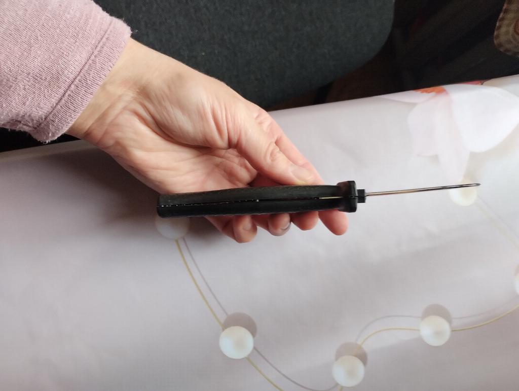 Poškriabaný čiernymi škvrnami na časti „čepeľ“