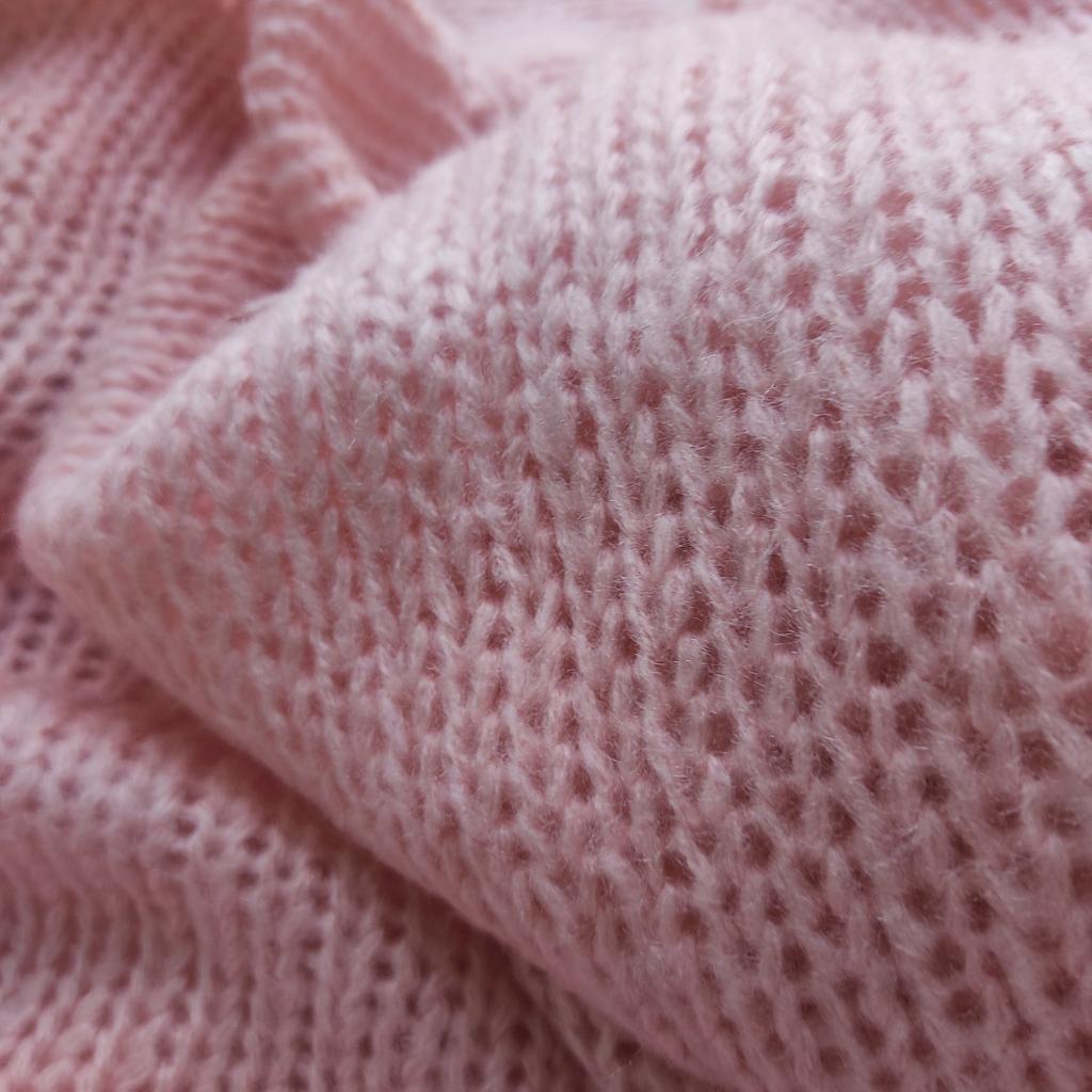 Farba je oveľa tmavšia ako na foto. Zaprášená ružová namiesto svetloružovej. Na golieri je vlna prestrihnutá .