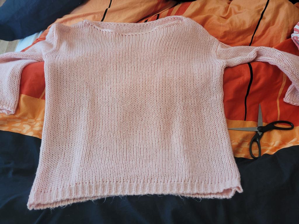Pekný svetrík... Krásna farba... Len príliš malý.