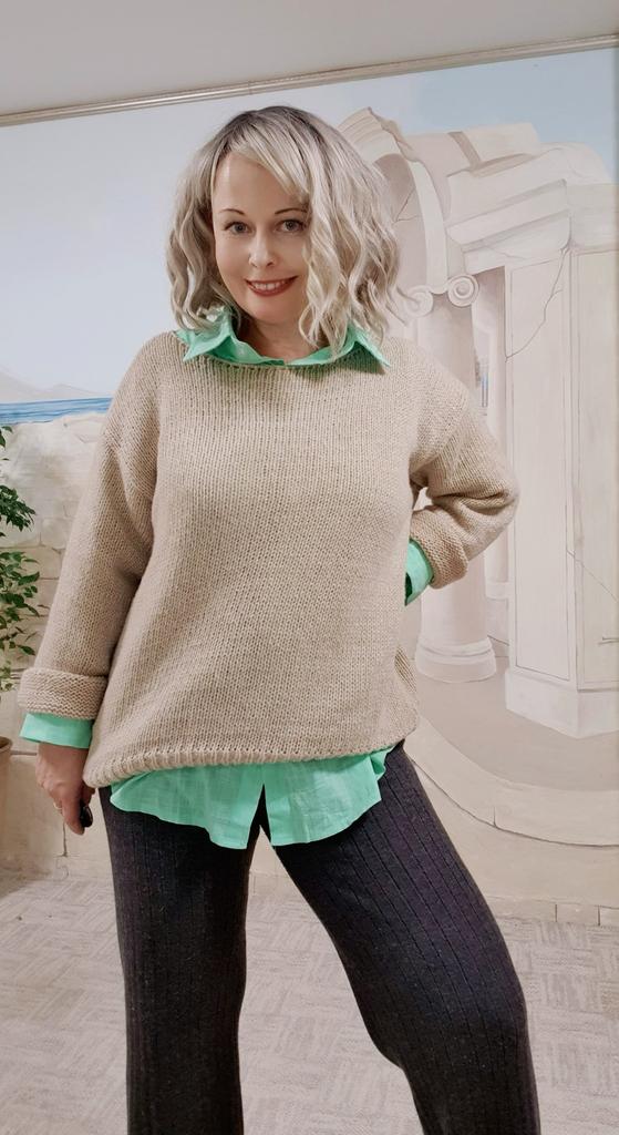 Veľká spokojnosť s týmto veľmi pekným svetrom! Je príjemný a teplý a veľmi mäkký. Veľmi sa mi páči farba! Odporučím iný s o jednu veľkosť menej. Včera som ho prala na 40 stupňov a potom som ho dala do sušičky. Bohužiaľ stále príliš veľké. Takže si naozaj musíte objednať malú veľkosť.