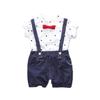 Neformálna súprava bavlnenej košele s krátkym rukávom a šortkami s bodkovanou potlačou, vďaka ktorej budú vaše deti vyzerať cool a atraktívne