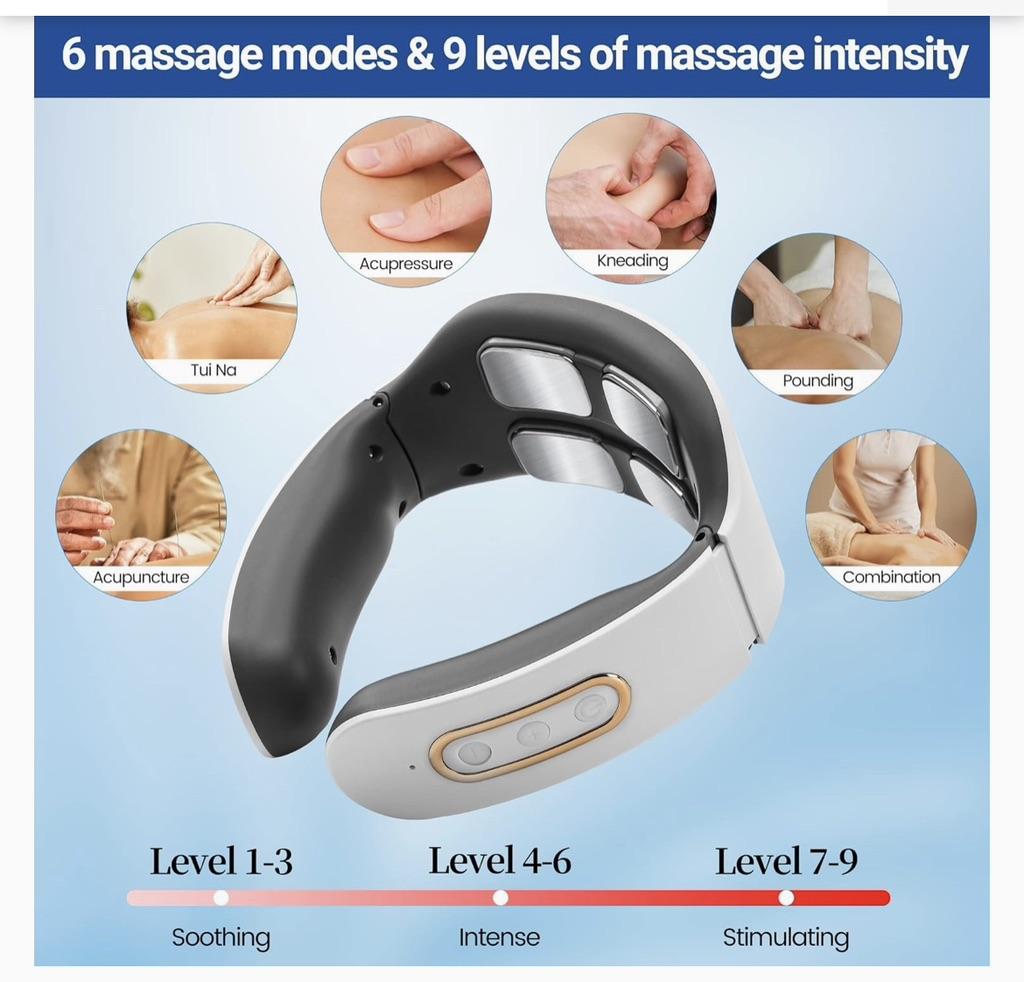 EMS elektrický masážny prístroj na krčnú chrbticu 6 modelov 9 prevodových stupňov krk masáž ramien relax stavcov automatické zahrievanie fyzioterapia úľava od bolesti dobíjacia