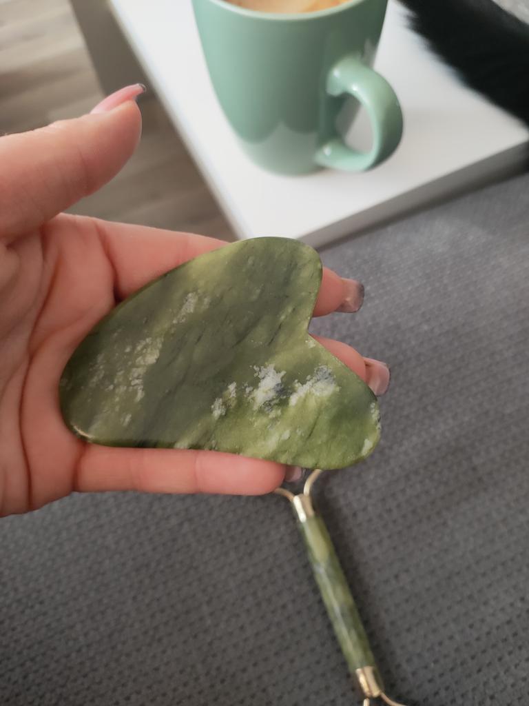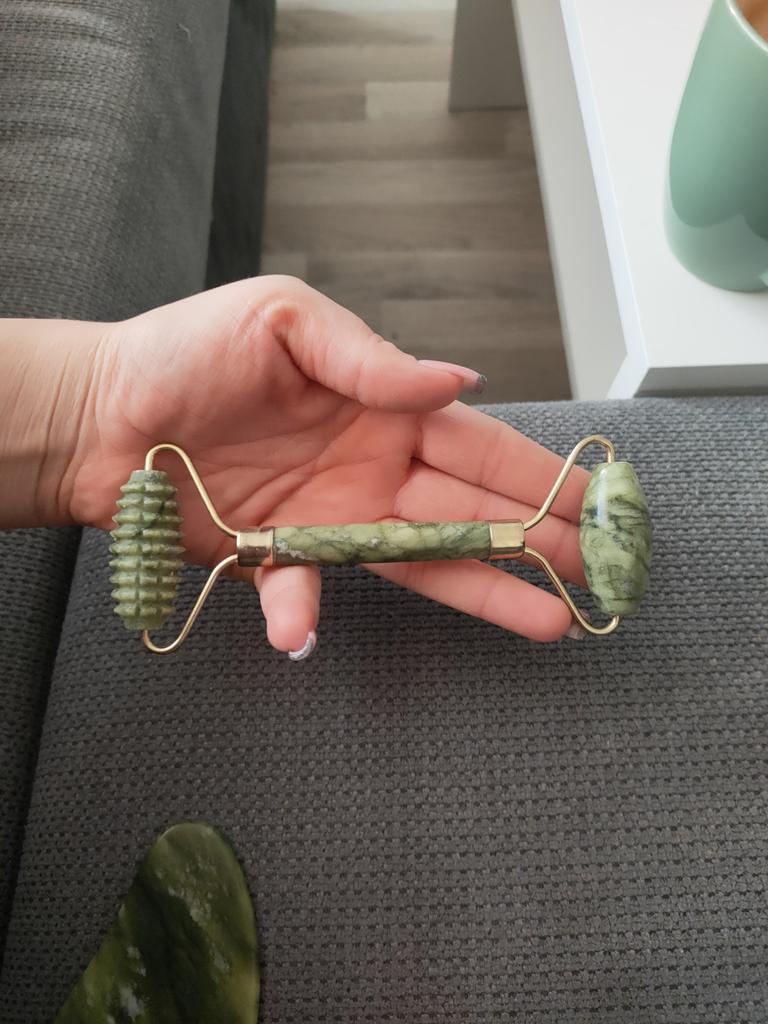 masér na tvár Súprava nefritového valčeka a kameňa. Poskytuje nám masáž, ktorá opravuje vrásky a aktivuje krvný obeh.. Valček má dva konce, jeden hrubý a druhý hladký. Ak ho používame každý deň, zlepšuje pleť. Prišiel veľmi dobre zabalený a doručenie trvalo asi 20 dní.. Pre viac tipov na krásu ma sledujte na Instagrame @jesscomitre