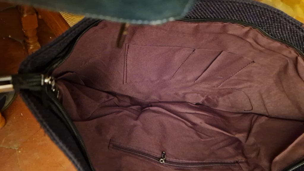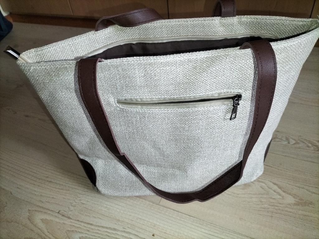 Tovar zodpovedá fotografii. Vo vnútri sú 2 malé vrecká plus 1 vrecko na zips. Na vonkajšej a zadnej strane tašky je 1 ďalšie vrecko tiež uzatvárateľné na zips. Taška je veľká, 30 cm x 41 cm. Materiál je príjemný na dotyk (bavlna a ľan). Dodanie do 1 mesiaca.