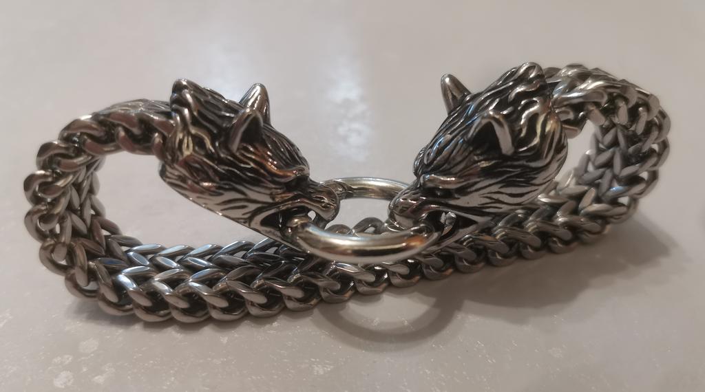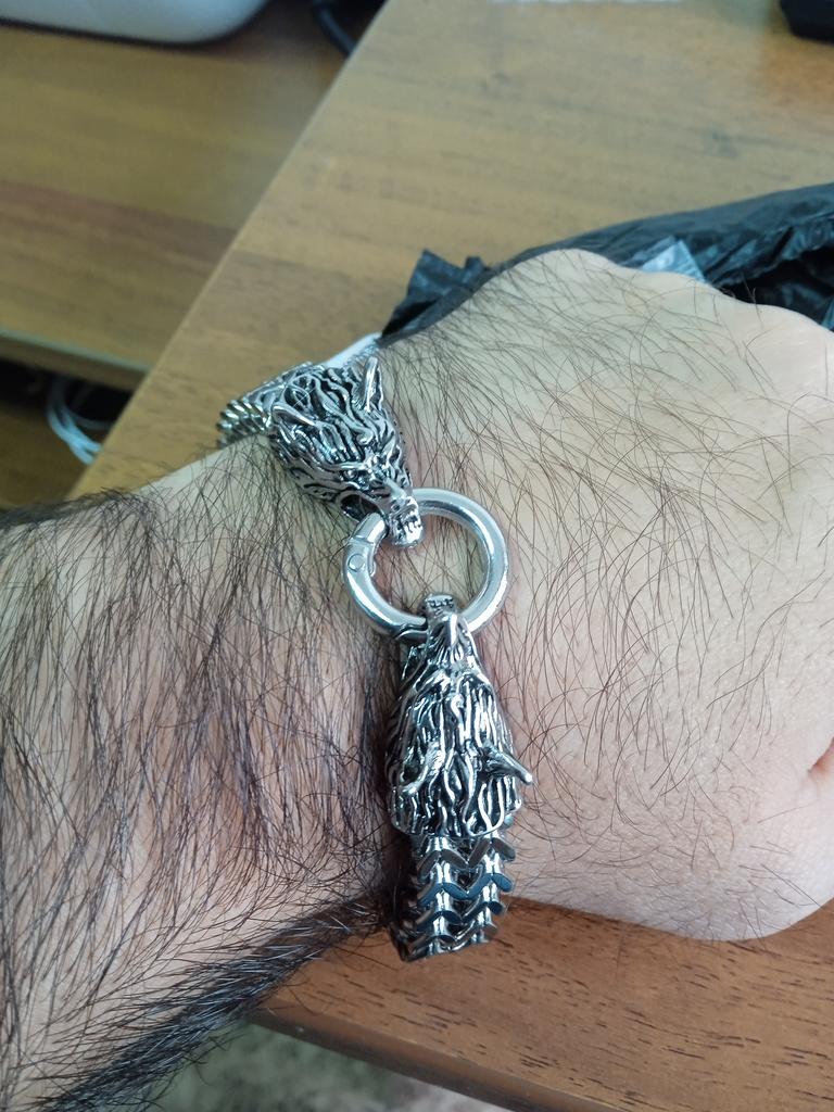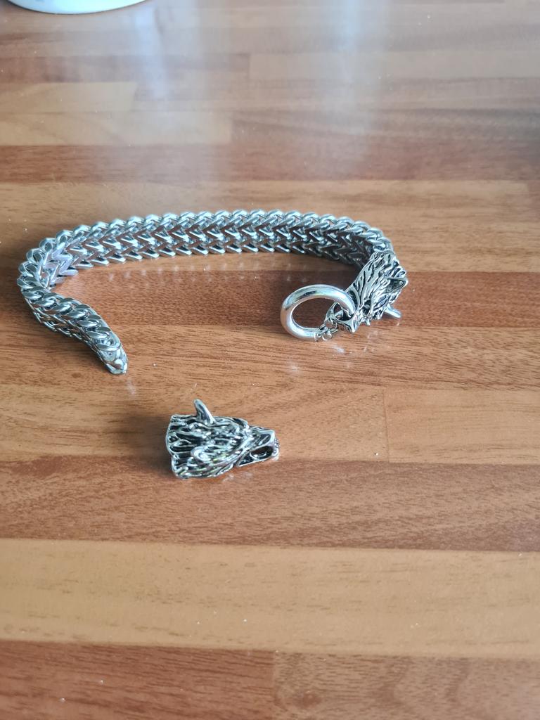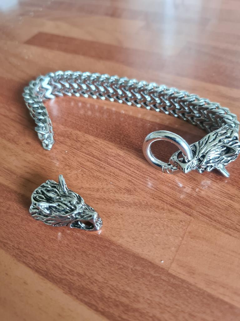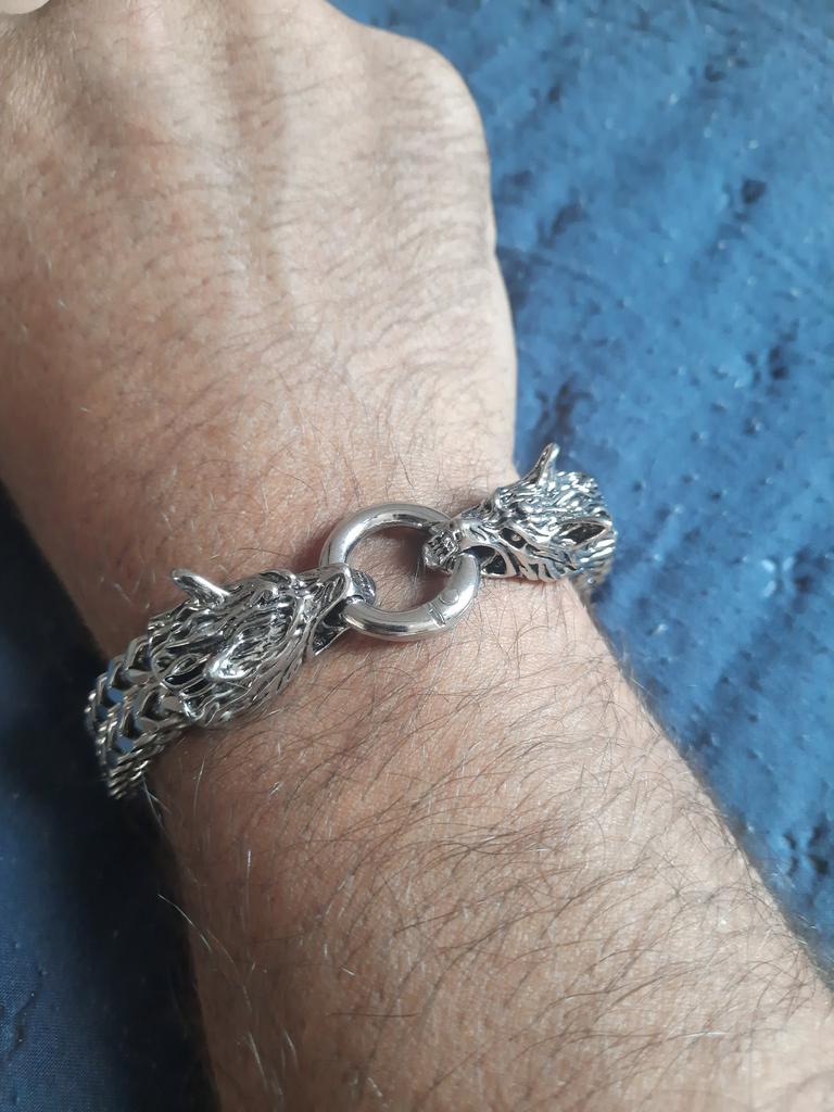 Nádherný náramok s dvoma vlčími hlavami a originálnym otváraním veľmi dobrej kvality, trochu ťažký, ale nič zlé, ďakujem Joon