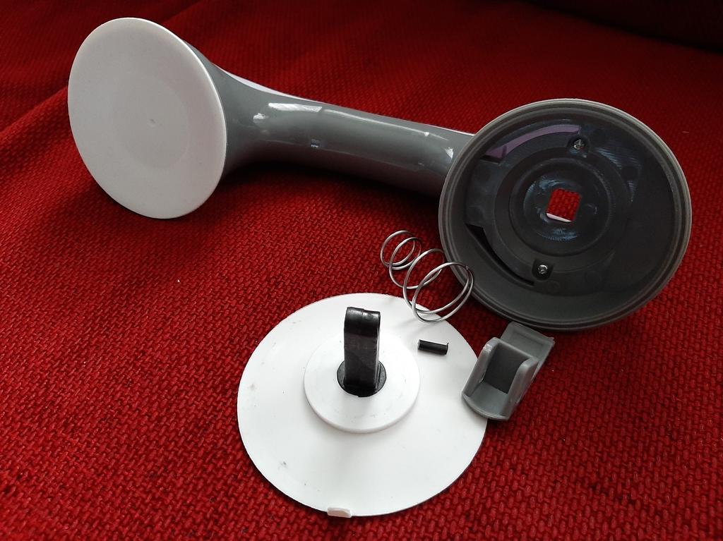 Rukoväť som ešte nenamontoval. Čítal som radu na internete: treba si prerezať strúčik čerstvého cesnaku a namastiť prísavky odrezkom z polovice, potom sa pevne prilepia. Treba vyskúšať