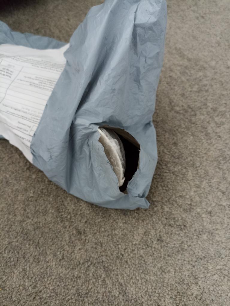 zásielku sme dostali 7. septembra a zistili sme, že jedna z rukovätí je poškodená a poškriabaná, ako je vidieť na priloženom obrázku.