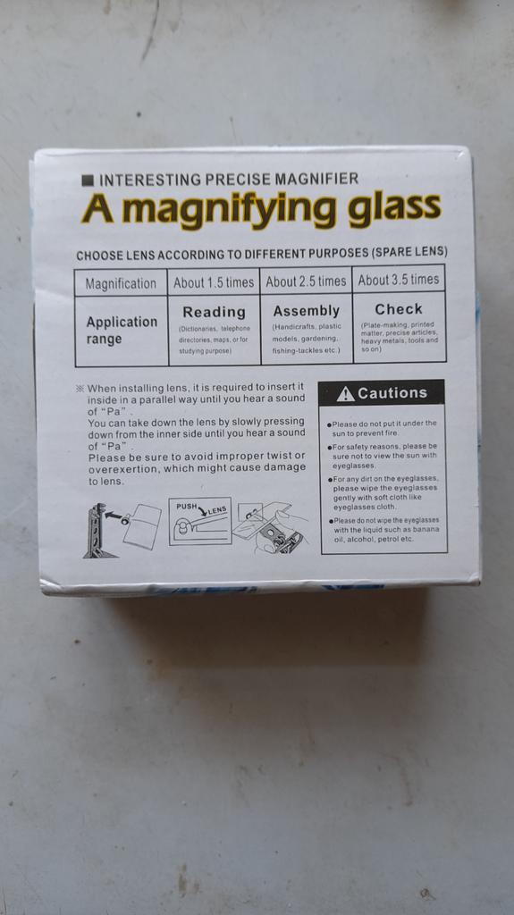 Tovar je veľmi dobre zabalený. Originálna konštrukcia prístroja. Ale sú aj nedostatky. Malá vzdialenosť medzi šošovkami a slabé zväčšenie.