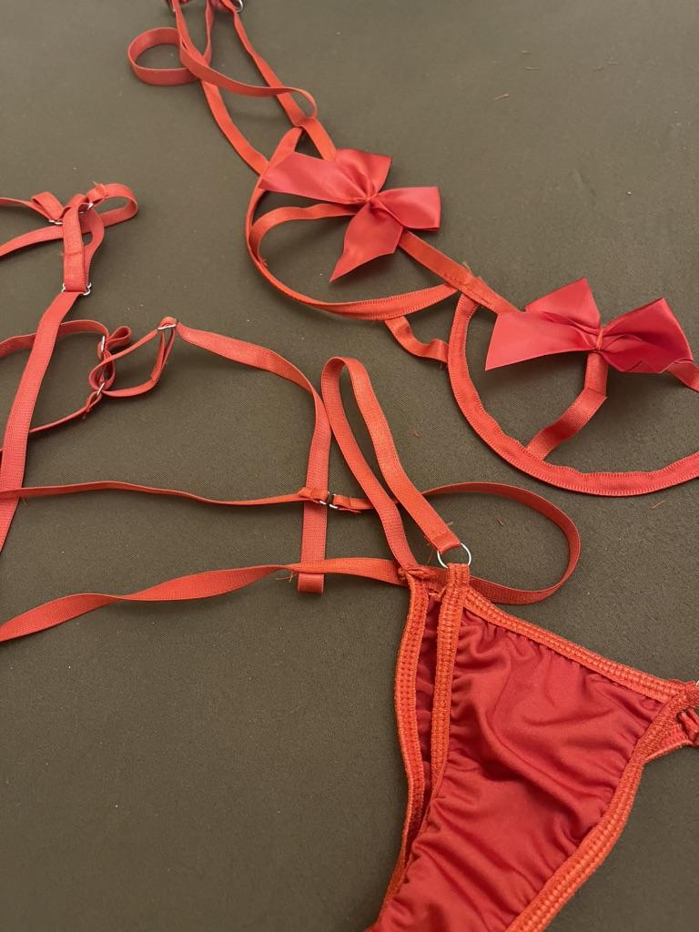 Erotická spodná bielizeň Sexy Roztomilé Bowknot Spodná bielizeň Kostice Podprsenka Vyhĺbená s tangami Podväzok Vianočný festival Cosplay pre ženy