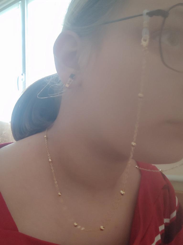 Reťaz je super. Nielenže skvele drží okuliare, ale aj skvele vyzerá. Je to skvelý doplnok k vášmu stylingu. Zlatá farba je naozaj pekná, nie žltá, ale zlatá ako má byť.