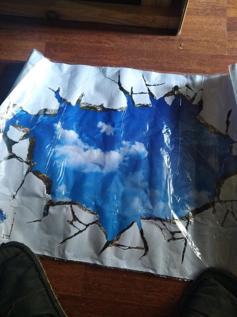 ešte nepoužité. predchádzajúca použitá nálepka na stenu sa už odlepuje od steny. pozrime sa na tento