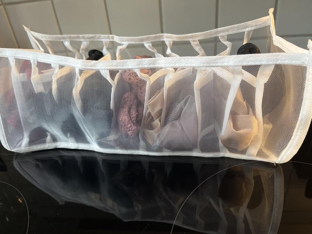 Kúpil som 2, jeden z nich bol trochu roztrhaný, ale zošil som ho, takže je to dobrá vec na triedenie ponožiek.